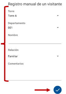 Si el condómino no tiene manera de generar el pase en ese momento, desde la aplicación de caseta, es posible generar un Pase de manera Manual, para registrar el ingreso de la visita. Pulse el icono Registro Manual Visitante.